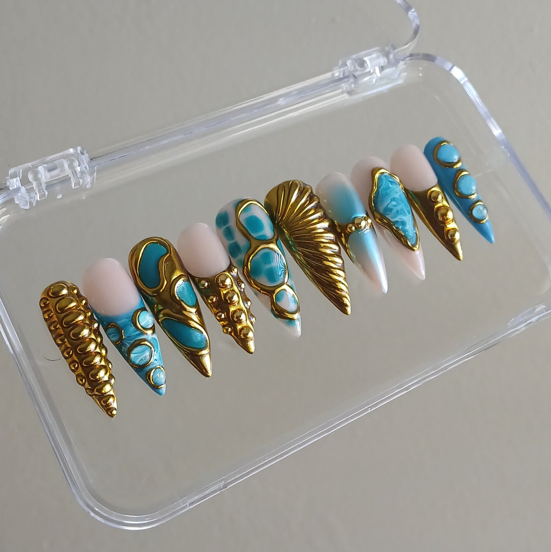 "Aqua" Aqua blue colors & Gold Chrome 3D details/accents.